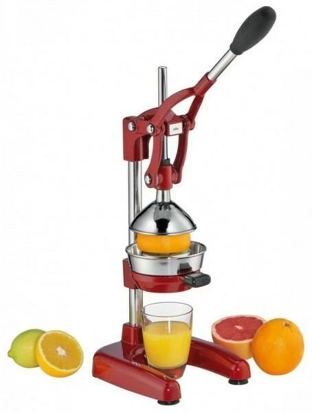 cilio Profi Saftpresse Amalfi in hochglanz rot. Für bis zu 25% mehr Saft von Zitrusfrüchten im Vergleich zu herkömmlichen Saftpressen.
