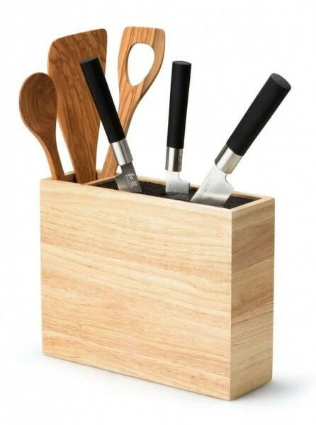 Continenta Messerblock mit flexiblem Einsatz und Utensilienbehälter, unbestückt. Zur individuellen Aufbewahrung von Messern, Kochlöffeln und Küchenutensilien.