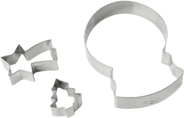 Ausstechformen Schneekugel, 3-tlg. Förmchen aus Edelstahl. Für die eigene Schneekugel mit Tannenbaum und Sternschnuppe.