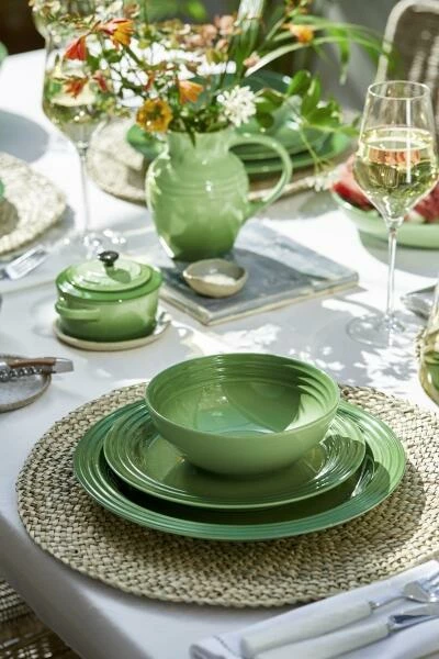Le Creuset, Bamboo, ist ein satter, natürlicher Farbton, der gleichzeitig aufmunternd und beruhigend wirkt und seine beständige Schönheit in der Küche und auf dem Tisch ausstrahlt.