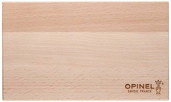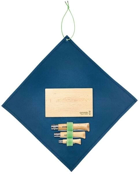Wenn es um die Brotzeit beim Wandern, die Campingküchen-Basisausrüstung oder das Picknick im Park geht, immer wieder stellt sich die Frage: Was nehme ich am besten mit? Ein Messer? Ein Schneidebrett? Einen Korkenzieher? Opinel hat mit diesem Set alle Fragen beantwortet: Es ist das essentielle Set, das man für eine Essenspause mitnehmen sollte! Es besteht aus drei ausgewählten Produkten: ein Opinel No. 12 mit dem bei den Küchenmessern bewährten Wellenschliff als großes Allroundmesser, ein Opinel No. 10 mit glatter Klinge und integriertem Korkenzieher sowie ein robustes, klappbares Opinel No. 6 Schälmesser. Alle Produkte sind mit einem Griff aus europäischer Buche versehen und die Klingen der Messer verwenden rostfreien Sandvik-12C27-Edelstahl. Passend dazu ist das 20 x 12 Zentimeter große Buchenholzbrett mit abgerundeten Kanten Teil des Sets.