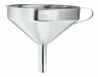 Trichter mit der konische Form, mit seitlichem Griff und herausnehmbarem Siebeinsatz ist ideal zum Umfüllen von Flüssigkeiten.
