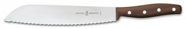 Eleganz, hohe Funktionalität und erstklassige Materialien durch feinstes Handwerk kombiniert, sind die hervorstechendsten Merkmale dieses Brotsägemessers. Die außergewöhnlich breite Klinge hat eine sehr gute gerade Schnittführung, auch wenn man ganz dünne Brotscheiben schneiden will. Der gebogene Schwung der Schneide entspricht der Fortführung der natürlichen wiegenden Handbewegung beim Schneiden. Das macht es so angenehm damit umzugehen.